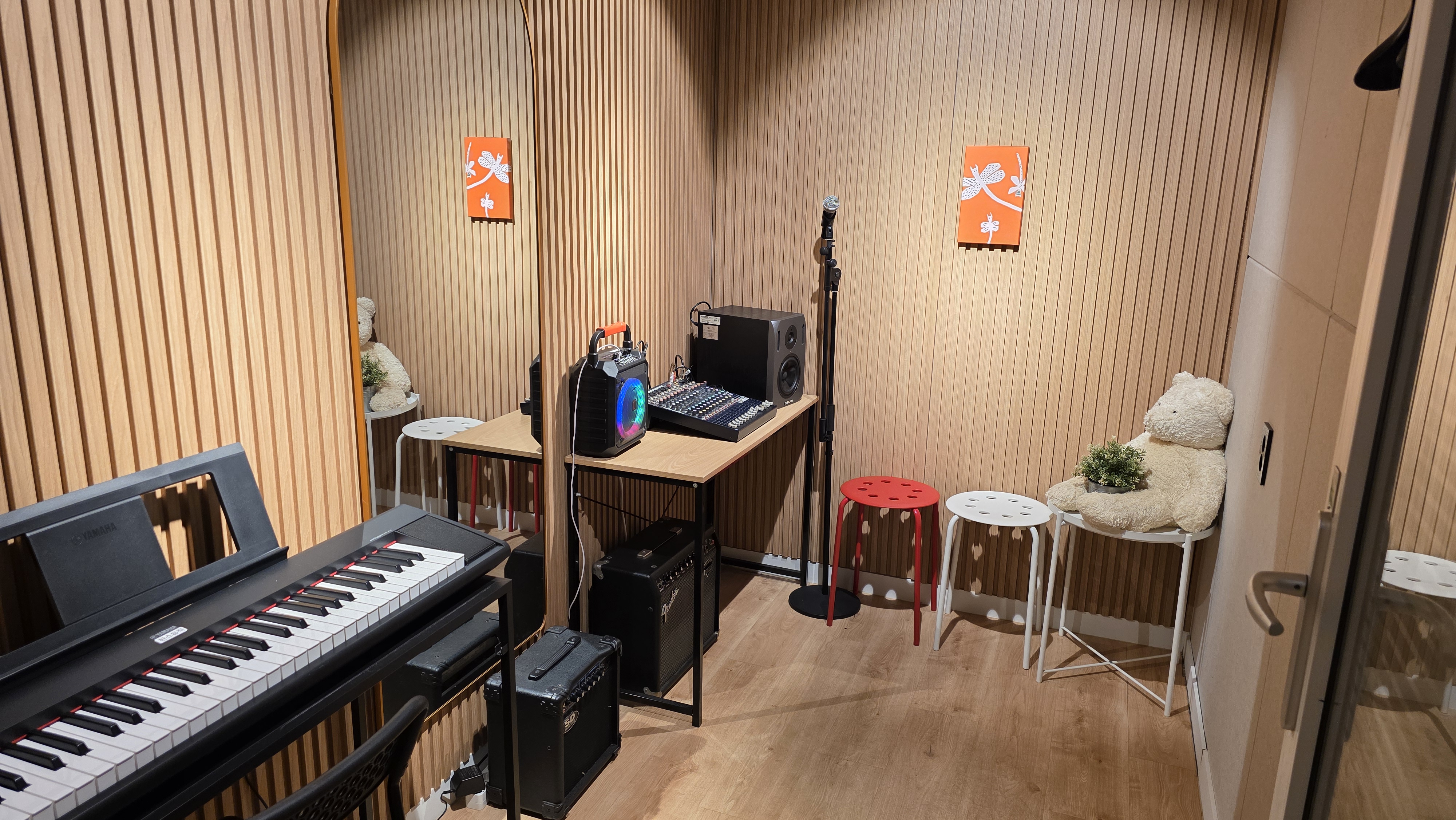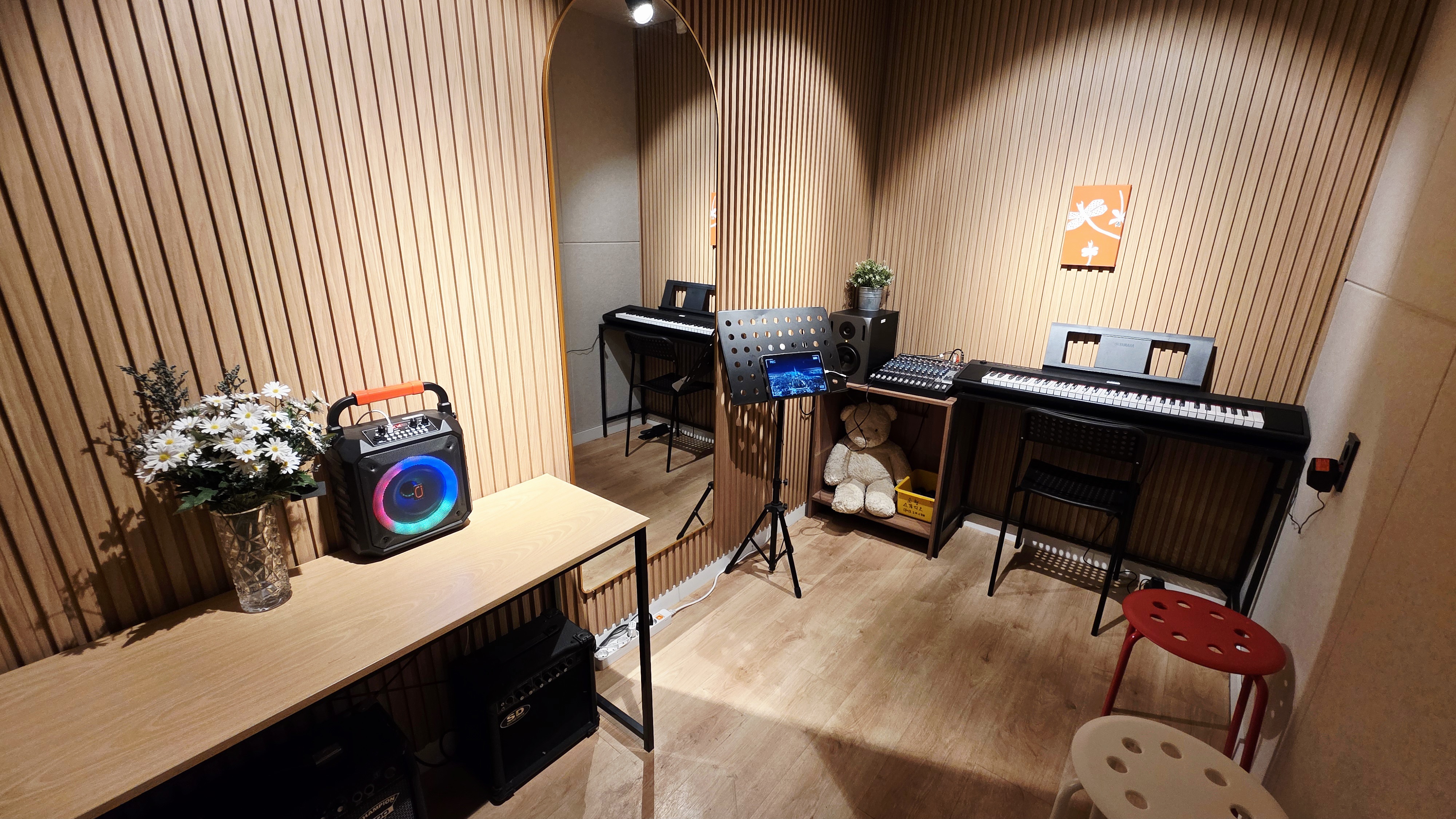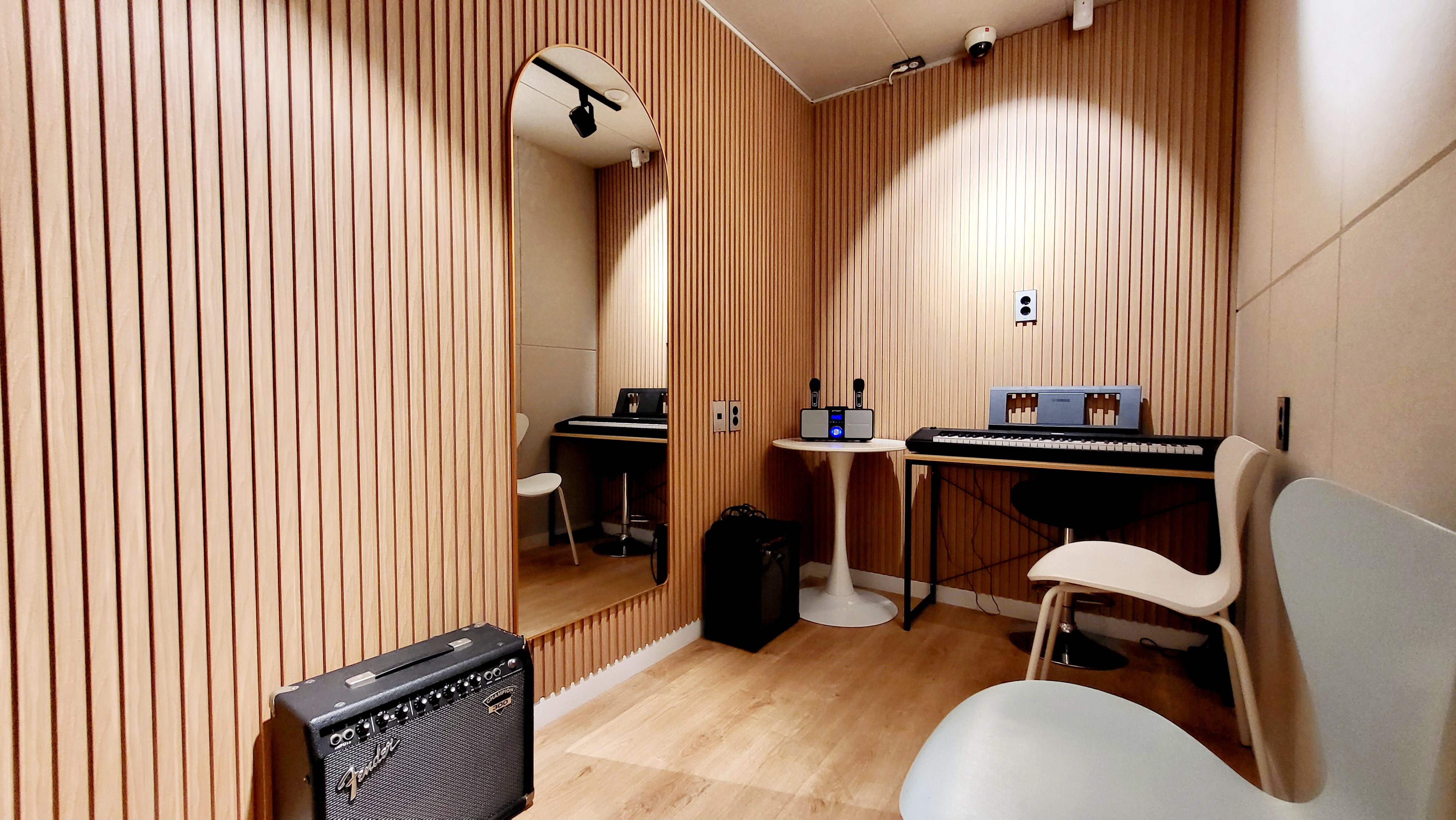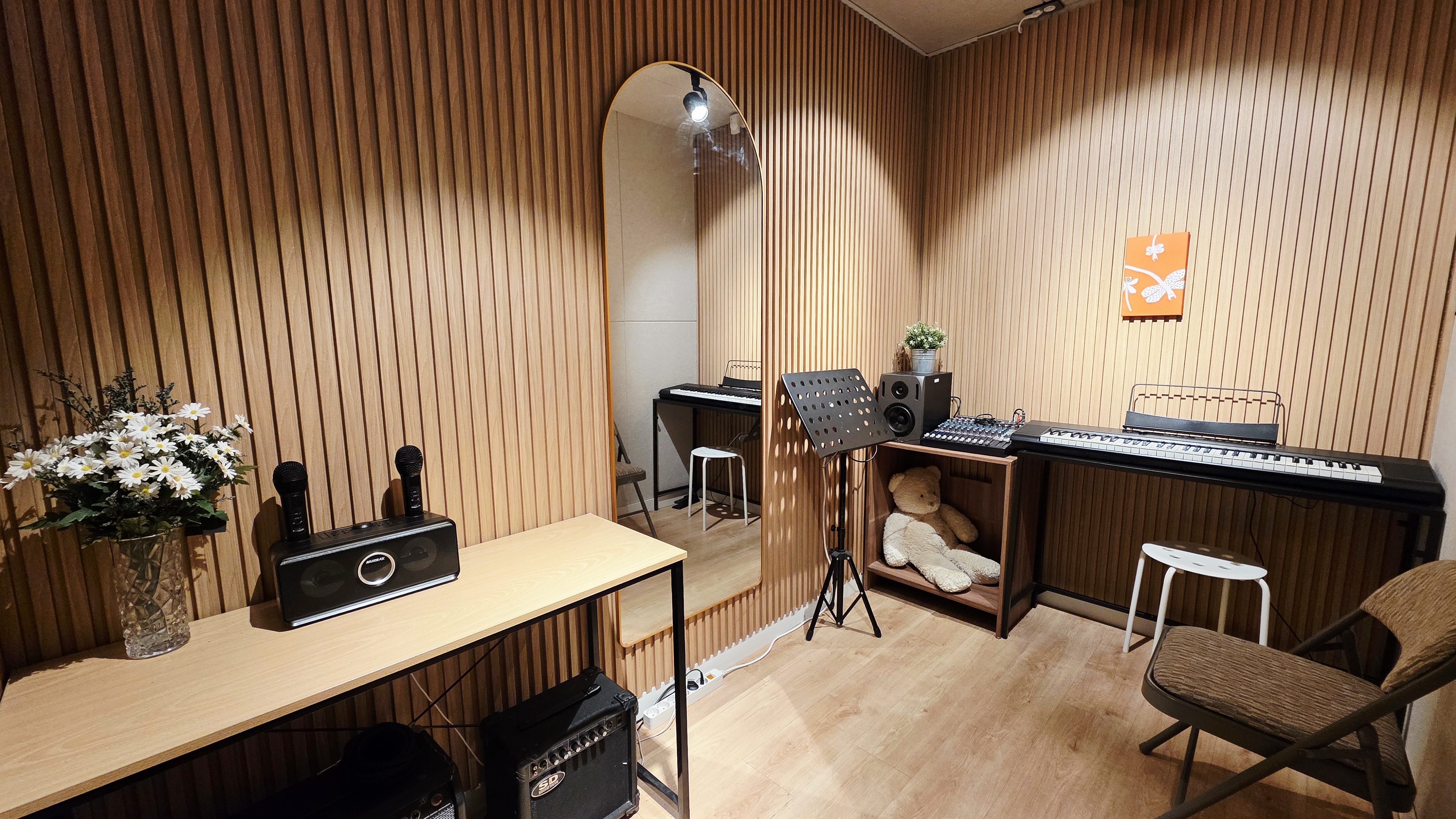 건반. 믹싱콘솔. 스피커. 기타베이스 앰프. 전신거울 기본세팅