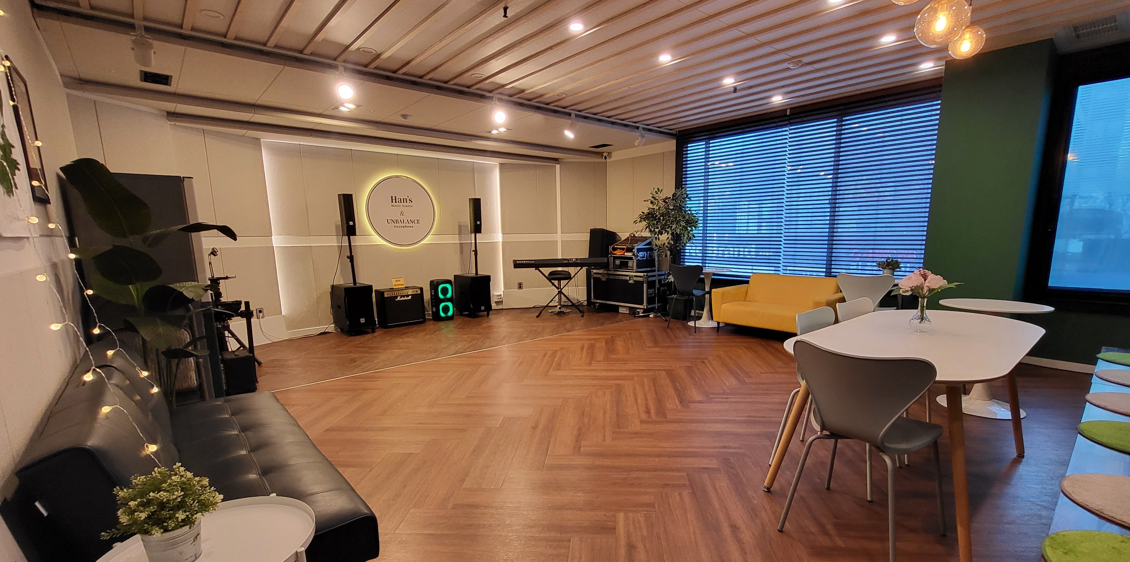 기본 음향시설 완비. 건반. 다이닝테이블. 소파. 냉장고. 촬영 거치대 세팅. 식·음료·주류 반입가능